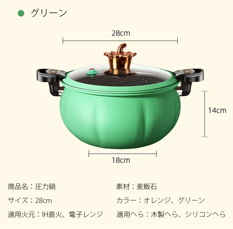 大容量パンプキン形状の圧力鍋